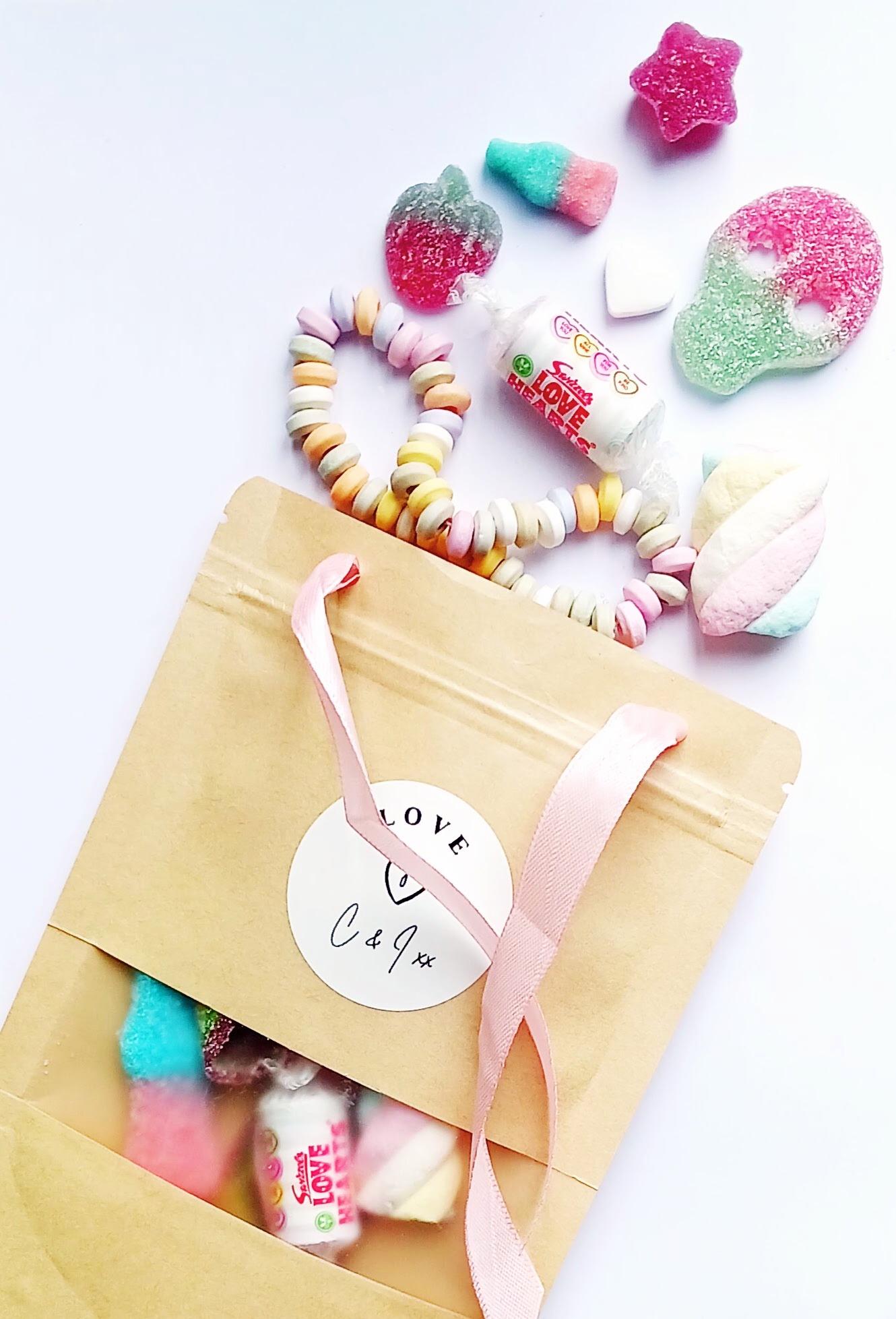 Looking for a thoughtful little gift that’s kind to the planet? Our eco-friendly medium-sized pouches are filled with delicious sweets, making them perfect for party favours, wedding giveaways, thank you gifts, or a little treat just for you.