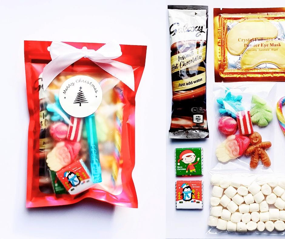 Make Christmas morning extra special with this pre-filled festive stocking pouch, packed with delicious treats and a little surprise gift.